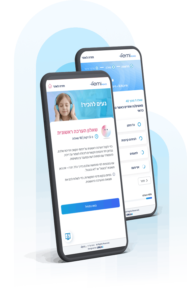 לא בטוחים אם יש צורך באבחון? בדיקת ההתאמה שלנו היא דיגיטלית, ללא עלות,